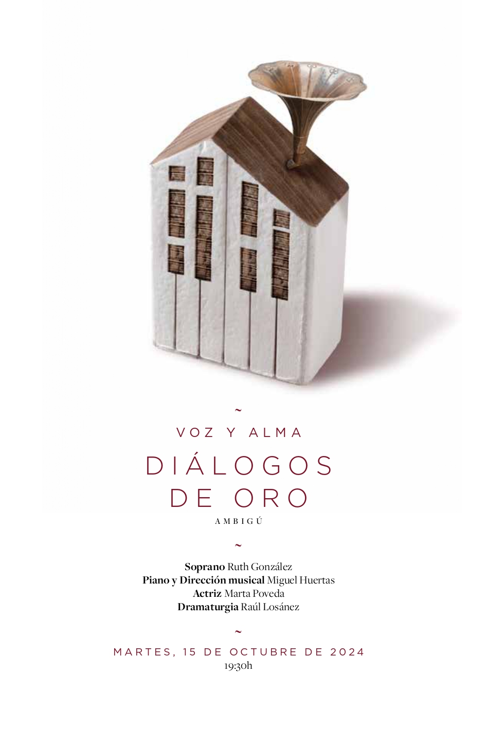 Concierto dramatizado, espectáculo poético-musical, fantasía lírica para soprano y actriz… son expresiones que podrían dar alguna idea sobre qué es Diálogos de Oro; pero no sería en verdad una idea exacta ni completa. Ciertamente, la original naturaleza de esta propuesta hace difícil su definición. Una originalidad que no nace como mera extravagancia creativa, sino que obedece al modesto pero meditado intento, creemos que interesante, de fundir la canción lírica y la poesía en una única obra que goce de armonía formal y que esté bien cohesionada desde el punto de vista conceptual y temático.